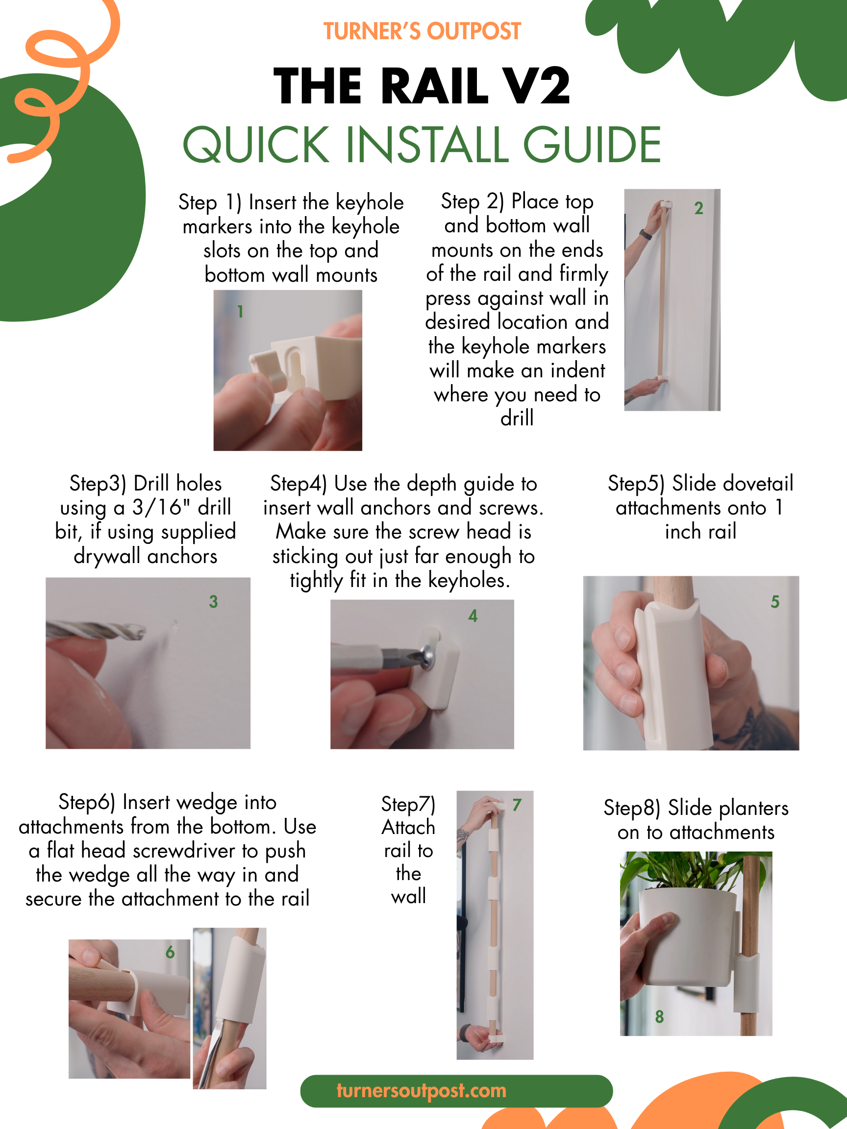 ✅ Kit includes 2 large pots (6 1/8 in) + 2 smaller pot (4 1/3 in) and OPTIONAL 36 inches of 3d printed rail in latte color